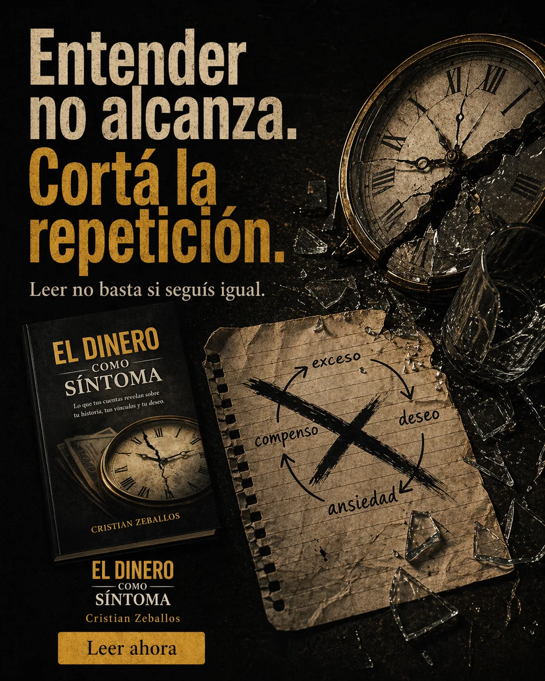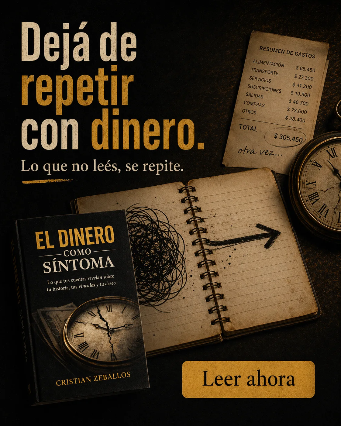 El dinero como síntoma no es un libro de finanzas. Es un libro sobre por qué repetís con el dinero — y cómo dejar de hacerlo.
